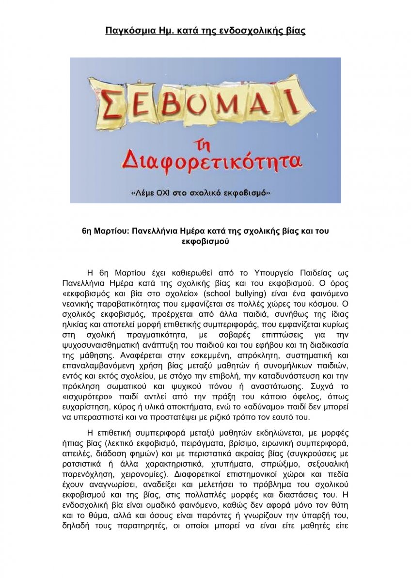 Παγκόσμια Ημ. κατά της ενδοσχολικής βίας 2021